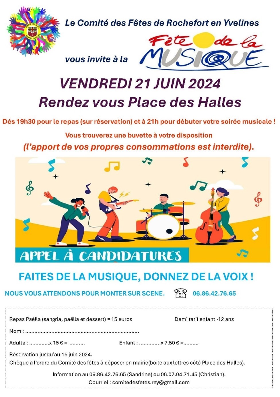 Devenu un rendez-vous incontournable de notre village, la fête de la musique nous promet de passer un excellent moment tous ensemble. Rendez-vous à partir de 19h30, place des Halles pour partager le repas (à réserver) puis à 21h00 pour faire la fête !
