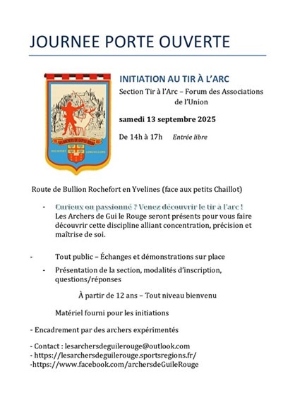 Journée Porte-Ouverte – initiation au Tir à l’Arc – samedi 13 sep-tembre –