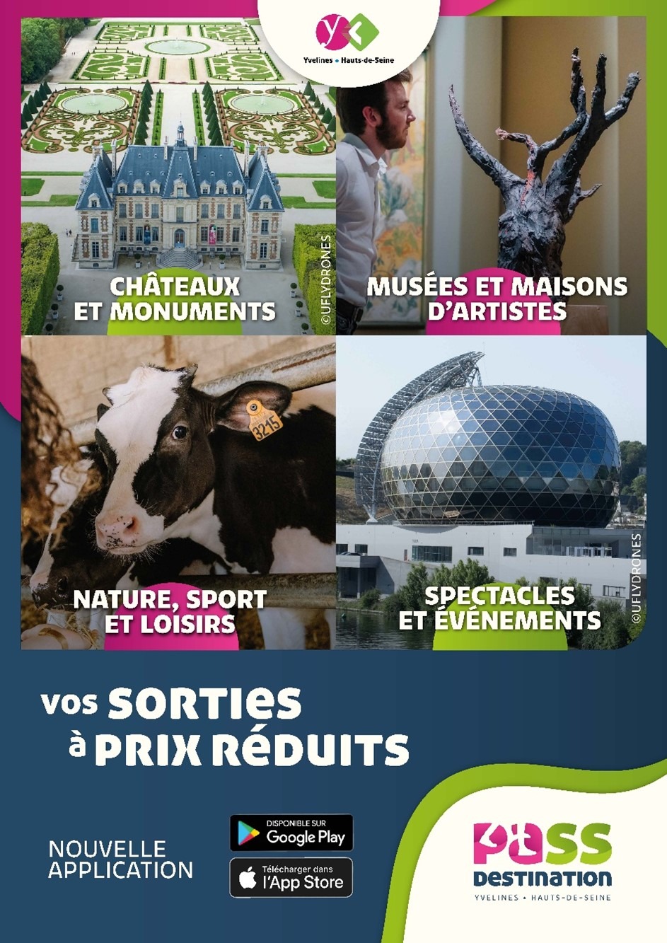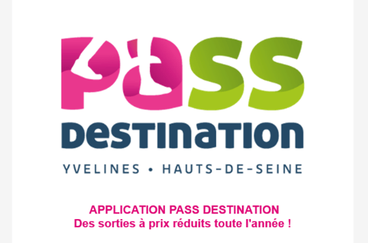 Le Pass Destination Yvelines – Hauts de Seine est une application développée par les Dépar-tements des Yvelines et des Hauts-de-Seine. Elle est gratuite et permet de bénéficier toute l'année de tarifs réduits et de bons plans dans plus de 100 sites touristiques des Yvelines et des Hauts-de-Seine.
