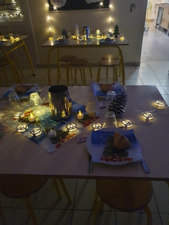 L’esprit de Noël bien présent à la cantine de l’école élémentaire de Rochefort et Longvilliers – Merci Maliqua et Célie !