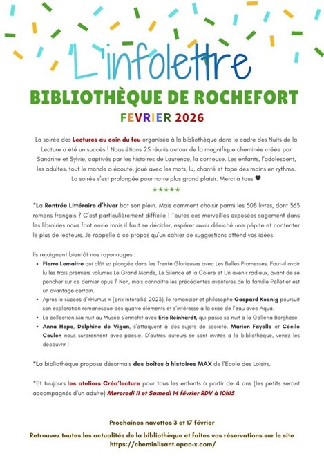 Retrouvez ici la lettre d’information de Sylvie, notre bibliothécaire