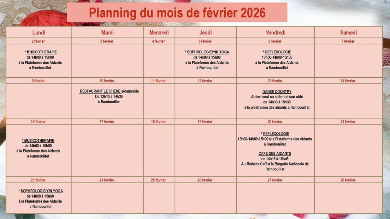 Planning de la Plateforme d’Accompagnement et d’Aide au Répit des Aidants