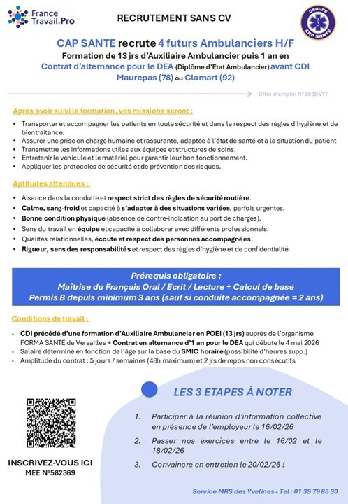 Cap Santé recrute 4 futurs ambulanciers H/F