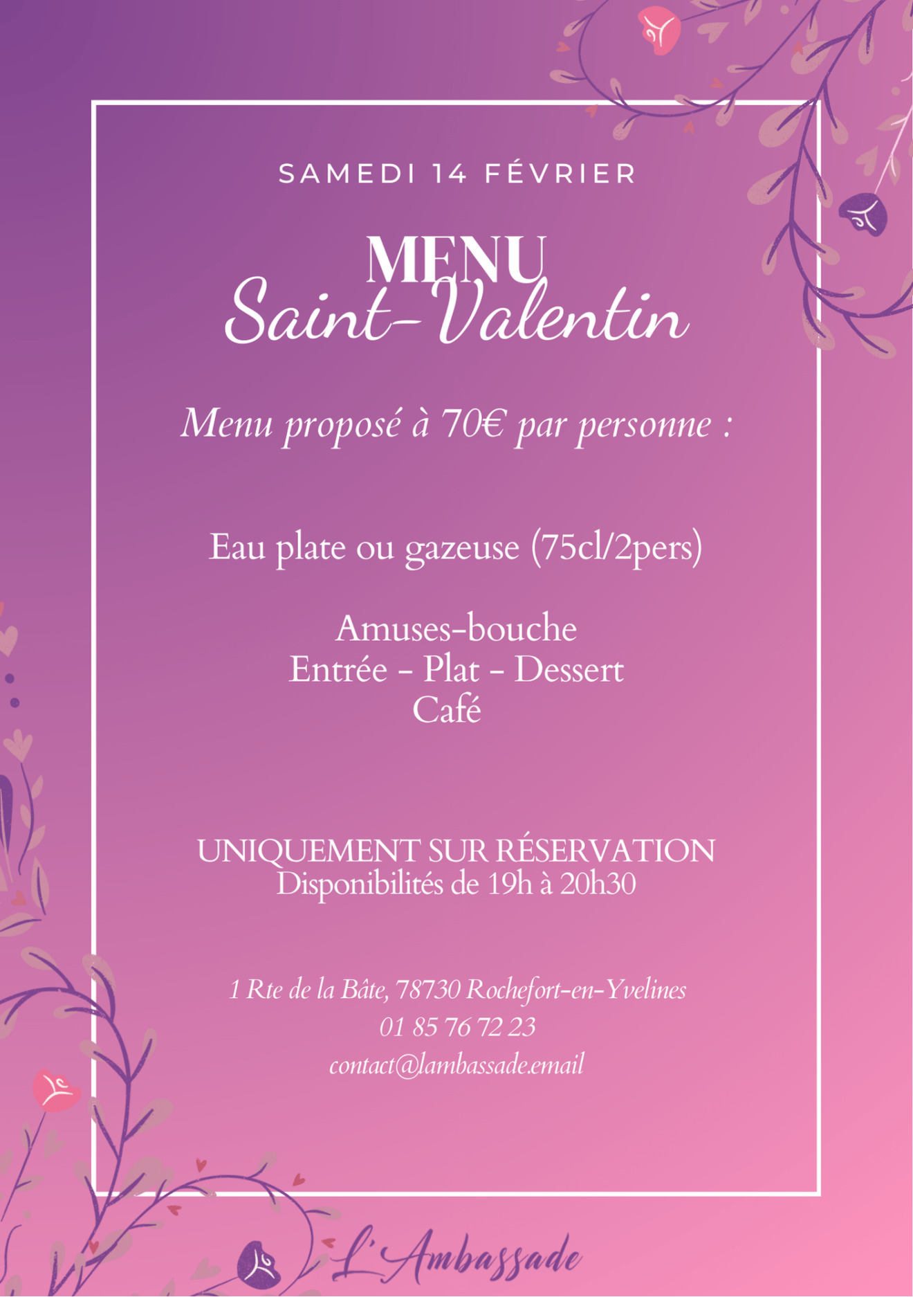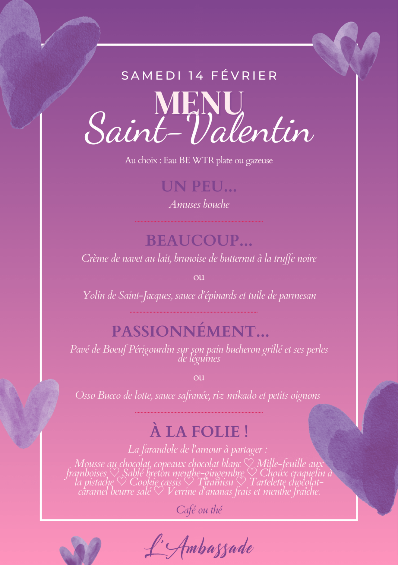 Soirée Saint Valentin - Menu Spécial | l'Ambassade Yvelines