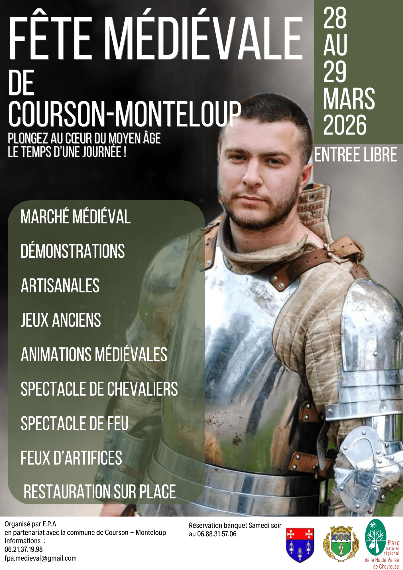 L’association FRATER ET SON PEUPLE D’ANTAN organise une médiévale au Château de Courson-Monteloup du 28 au 29 mars 2026 en partenariat avec la ville de Courson-Monteloup et le PNR de Chevreuse.