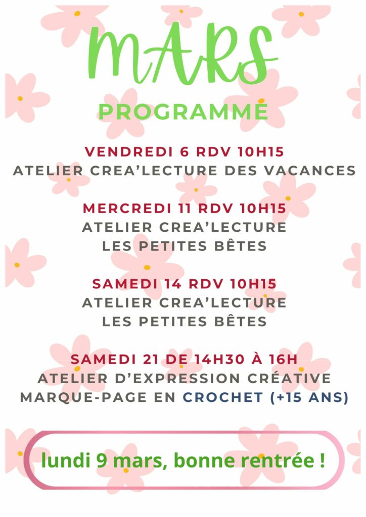 Animations en mars à la bibliothèque !